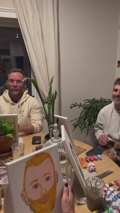 Pas besoin d'avoir déjà tenu un pinceau. Vous recevrez une vidéo avec une artiste peintre qui vous guide étape par étape transformant même les « spécialistes des bonhommes allumettes » en artistes fiers.